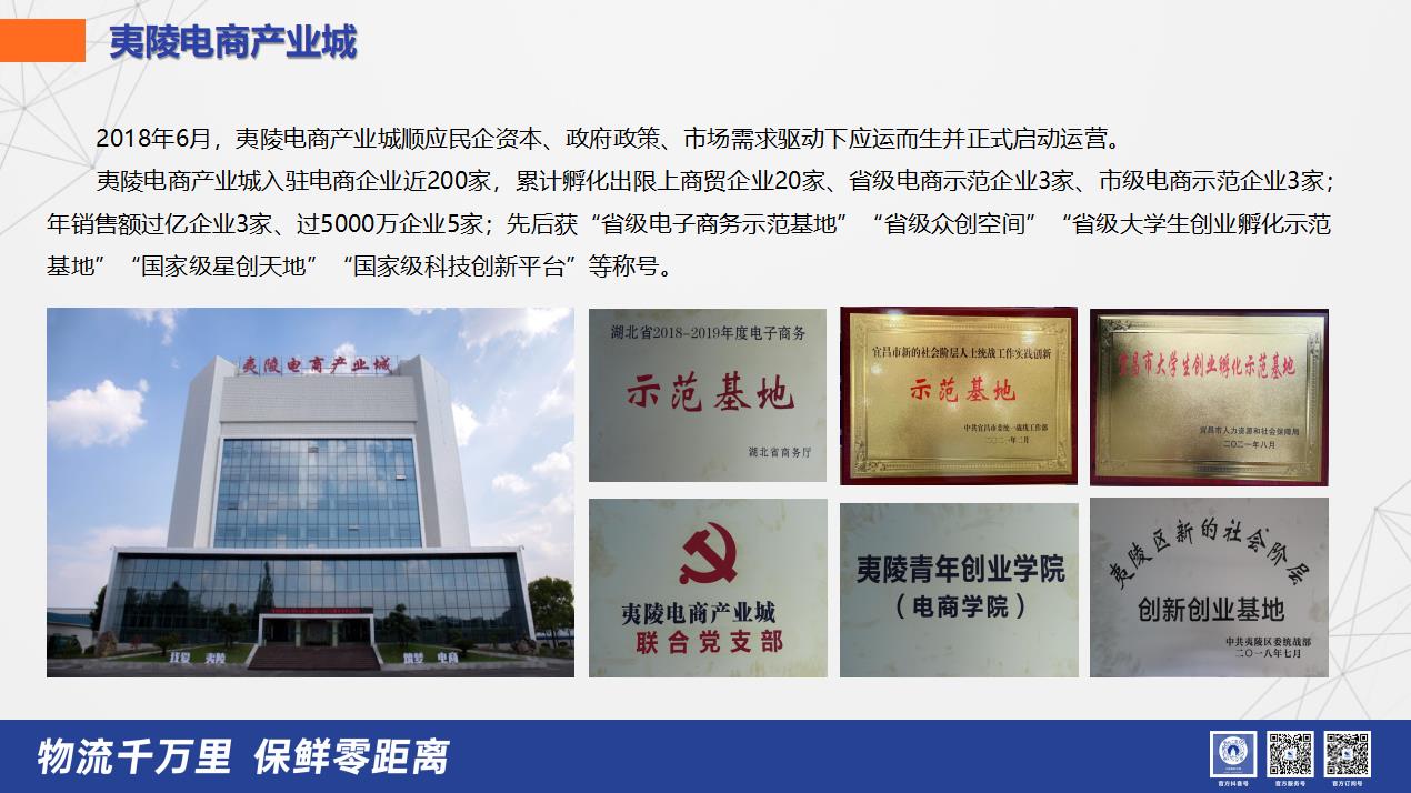 夷陵電商產(chǎn)業(yè)園項(xiàng)目2018年被認(rèn)定為湖北省電子商務(wù)示范基地,成為宜昌市政府優(yōu)先支持的電商物流龍頭產(chǎn)業(yè)項(xiàng)目,“互聯(lián)網(wǎng)+物流”的現(xiàn)代化物流服務(wù)體系基本形成。