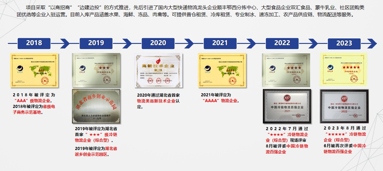 湖北三峽銀嶺冷鏈物流股份有限公司是國家“AAAA”級物流企業(yè)、“★★★★★”級冷鏈物流企業(yè)(綜合型)、全國百強(qiáng)冷鏈物流企業(yè)、湖北省“返鄉(xiāng)創(chuàng)業(yè)示范園”、湖北首家物流類高新技術(shù)企業(yè)。
